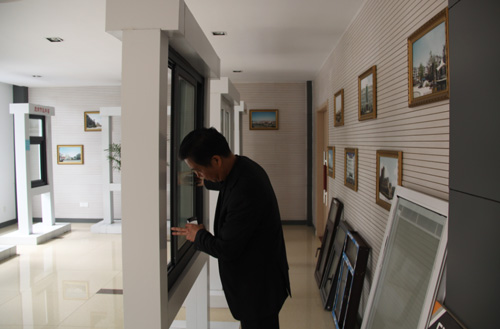 新城地產(chǎn)工程部負(fù)責(zé)人在認(rèn)真研究我公司展廳的節(jié)能樣窗