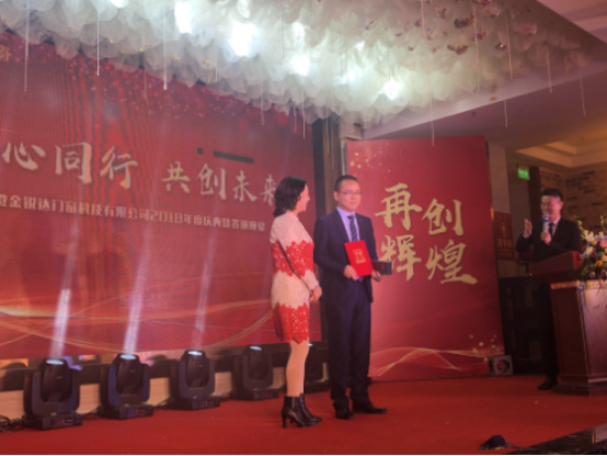 隨后,公司對陪伴金銳達(dá)多年的供應(yīng)商合作伙伴、老員工以及2018年中表現(xiàn)突出的安裝班組和員工進(jìn)行了表彰。之后的京劇、舞蹈、詩朗誦等精彩節(jié)目和抽獎(jiǎng)活動(dòng)助推氣氛走向高潮,整個(gè)會(huì)場充滿了熱烈、喜慶、和諧的氣氛。