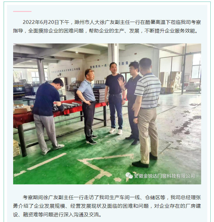 熱烈歡迎市人大徐廣友副主任一行蒞臨我司考察指導(dǎo)!